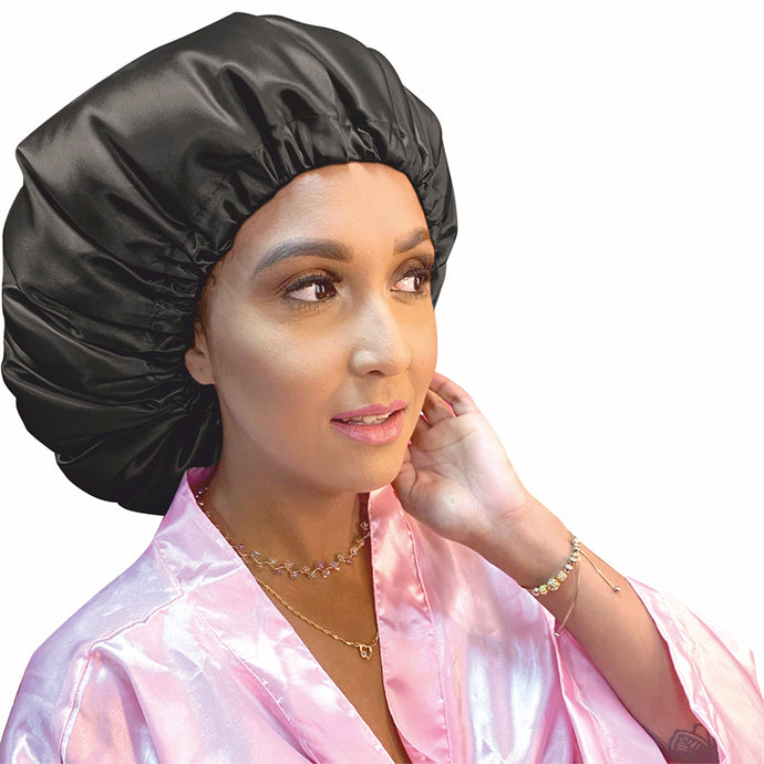 TOUCA GRANDE DE CETIM PRETA ANTI-FRIZZ SANTA CLARA